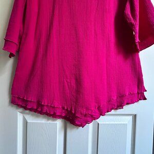 Soft Surroundings Women's Large Pink Siesta Key Layered Gauze Cotton Tunic Top