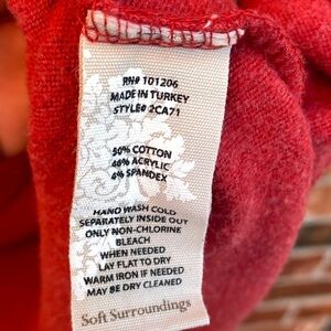 Soft Surroundings Womens Large Red Rayleigh Roll Tab Fleece Zip Sweater