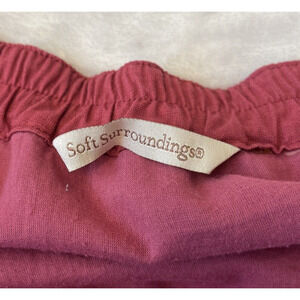 Add a pop of color to your wardrobe with this Soft Surroundings A-Line skirt in a beautiful berry shade. Made from a linen and cotton blend, this skirt is perfect for summer and spring. It features a zip closure, making it easy to put on and take off, and is machine washable for your convenience. This skirt is ideal for a variety of occasions, including travel, casual outings, workwear, and business meetings. The skirt is lined and has a flowy feel, making it comfortable to wear. It is available in size M and is a regular fit. Made in China, this skirt is not vintage and is not personalized. Get ready to add this stylish piece to your wardrobe today!