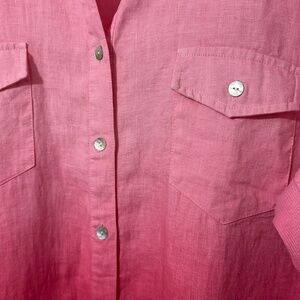 Soft Surroundings Womens Linen Gradient Color Shirt Plus Size 1X Button Down
