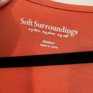 Soft Surroundings Womens Long Sleeve Tunic Top Size M Orange Peach Scoop Neck