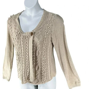 Soft Surroundings Womens M Cable Knit Sweater Bobble Accents Asym Art To Wear