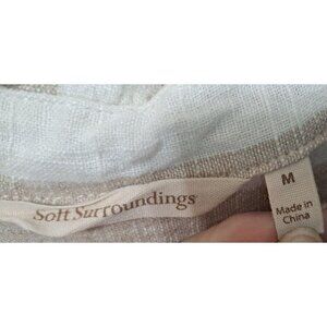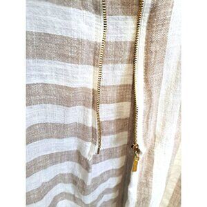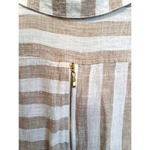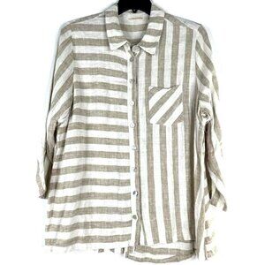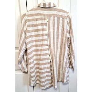 Soft Surroundings Women's M Camina Tunic Long Sleeve Beige Striped Linen Blend