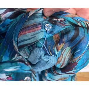 Soft Surroundings Women's Medium Blue Abstract Amelie Top Boho Button Up NWT