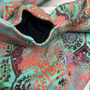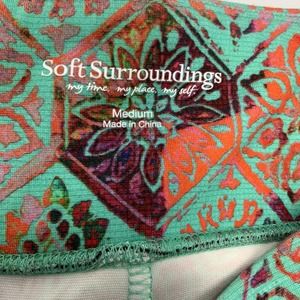 Soft Surroundings Ankle Length Leggings. Soft fabric, tiny front pocket at waist, Turquoise, Corals, Purple/ Pink. Size Medium. Good Condition, Sku: c-63