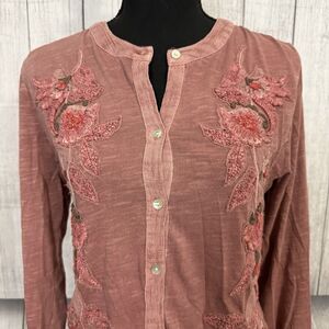 - Soft Surroundings Women's Medium Mauve Embroidered Cotton Button Front Shirt