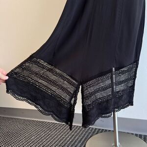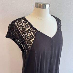 Soft Surroundings Womens Medium Maxi Dress Black Lace Trim Cap Sleeves V Neck