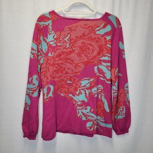 Soft Surroundings Women's Medium Pullover Sweater Pink Blue Jacquard
