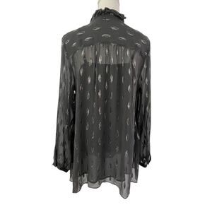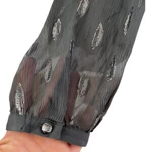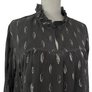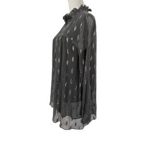 Soft Surroundings Womens Metallic Chiffon Ruffle Neck Blouse Top Size L Gray
