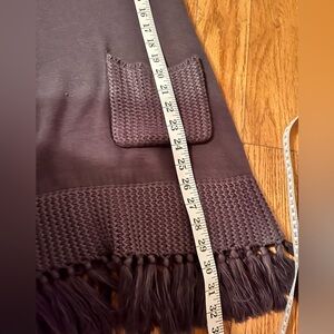 Stay cozy and stylish with this unique navy blue vintage cowl neck sweater by Soft Surroundings. The size is PM and it measures 18 across and 32 down.,5)3 sweater could be used as a mini dress. It has unique knitting around the cuffs and collar, sports fringes at the bottom, and has two front pockets, due to the vintage condition and it appears to have been stored on a hanger, there is damage to the sweater at the top where the fabric is strained. See the photos. It does have a few pulled threads. See photos. Still has a lot of wear and style remaining and because this is a great brand and so soft and cozy, you may see this sweater as I do, with a lot of potential! Perfect for nearly any occasion.