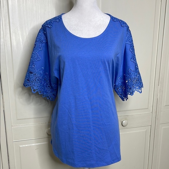 Soft Surroundings Women’s Nikita Lace Sleeve Tee Size Medium Blue