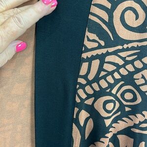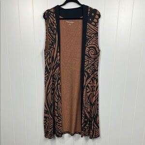 Soft Surroundings Womens Open Front Cardigan 1X Tribal Brown Black Cream Sleeveless Long Lines Black Border Stunning Elegant Eye-Catching EUC
