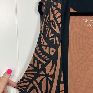 Soft Surroundings Womens Open Front Cardigan 1X Brown Black Tribal Long Lines