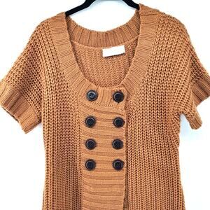 Soft Surroundings Womens PM Wool City Sweater Dress Brown Double Button Tunic