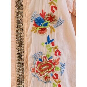 Soft Surroundings Womens Peasant TunicTop sz S Boho Floral Embroidered Cotton