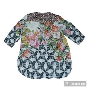 Soft Surroundings Women's Petite Small Floral Print Tunic Button Sheer Top Boho