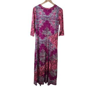 Soft Surroundings Womens Pink Purple Paisley Boho Stretch Maxi Dress Small