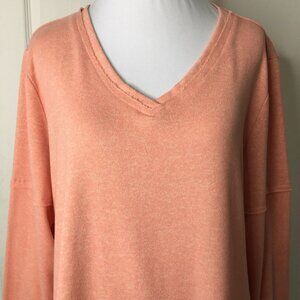 Soft Surroundings Women's Pink Salmon V Neck Long Sleeve Shirt Size XL Petite