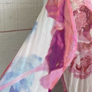 Soft Surroundings Women's Pink/Blue Floral Top Size Medium Tunic Tassel Ties