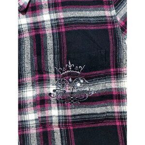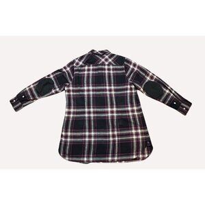 Soft Surroundings Womens Plaid Flannel Shirt XL Embroidered Crest Elbow Patches