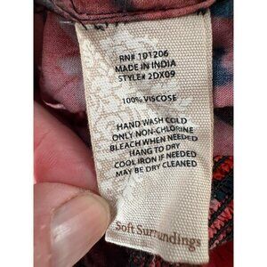 Soft Surroundings Womens Red Floral Blouse With Elastic Hem & Button Cuffs Size