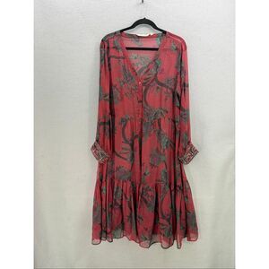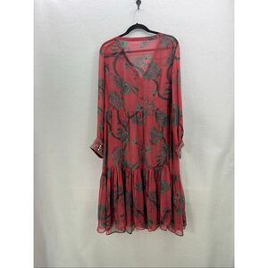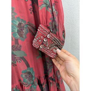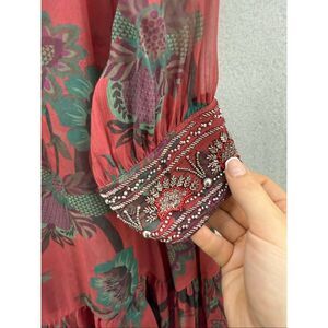 Soft Surroundings Womens Red Kundali Silk Road Floral Beaded Tunic Dress Large