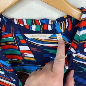 Soft Surroundings Women's Sail Away Top Sailboat Print Dark Blue Size Medium