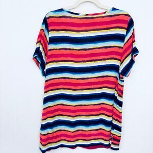 Soft Surroundings Womens Short Sleeve T Shirt Blouse Size L Sequins Stripe Multi