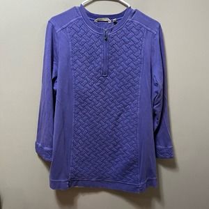 Soft Surroundings Pullover Top Womens Size Large Purple Quilted Golf Shores 1/4 Zip