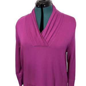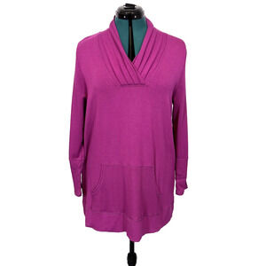 Soft Surroundings Womens Size M Magenta Cozy Knit Tunic Top Kangaroo Pocket