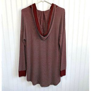 Soft Surroundings Womens Small Rust White Stripe Long Sleeve Hooded Top Oversized