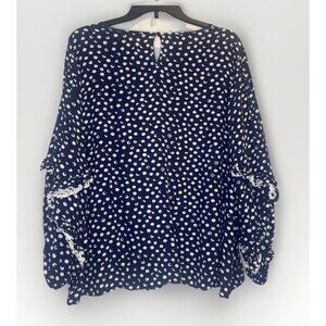 Soft Surroundings Women’s Sonrisa Blue White Polka Dot Ruffle Blouse Top Sz 1X