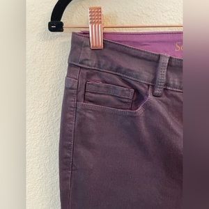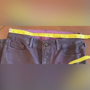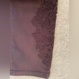 Laced coated jeans in a purple-red maroon color. Classic with such fun detail.