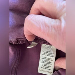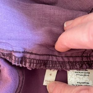 91% cotton 7% lycra elastrell-p 2% lycra spandex. Inseam is 27”. Pre loved condition. A little fading on the ankles.