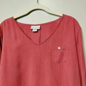 Soft Surroundings Women's Sz L Salmon Pink Tunic Roll Tab Flowy Lyocell V Neck