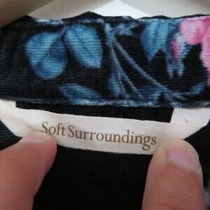Soft Surroundings Womens Sz S Jardim Velvet Black Floral Velvet Button Front Top