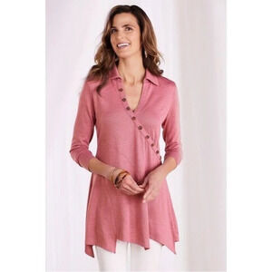 Soft Surroundings Women's Tamara Lightweight Knit Asymmetrical Button Tunic SZ M