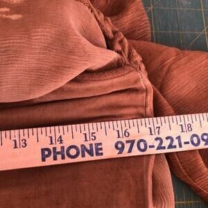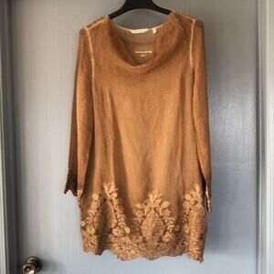 Soft Surroundings Women's Tawny Brown Crinkle Silk Tunic Top M embroider 2 pc