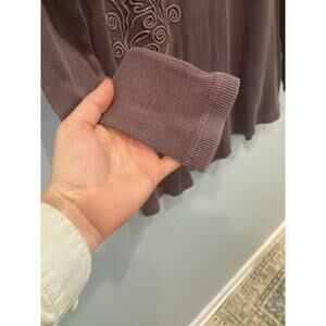 Soft Surroundings Womens Thermal Shirt XS Purple Embroidered Waffle Knit Boho