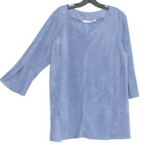 Soft Surroundings Womens Top Izzy Tunic Faux Suede V Neck Blue Size Large IO