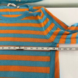 Soft Surroundings Womens Tunic Pullover Sweater Size Medium Blue Striped Wool Cashmere Blend Round Neck Long Sleeve