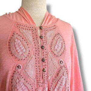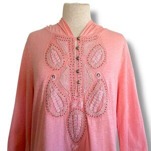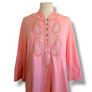 Soft Surroundings Womens Tunic Top Sz XL Peach Boho Embroidered Coastal Hoodie