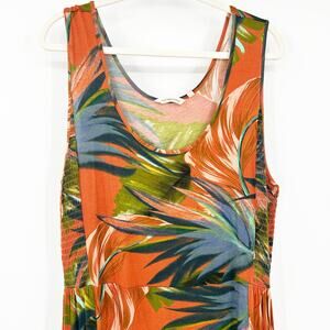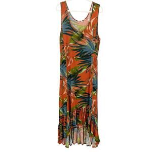 Soft Surroundings Womens Vacation Fabiana Ruffled Tropical Print Maxi Dress. Size Large.