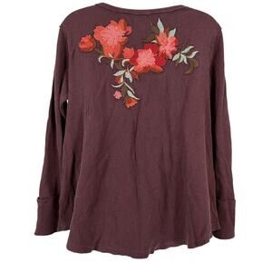 Soft Surroundings Womens Waffle Knit Embroidered Floral V-Neck Long Sleeve Top S