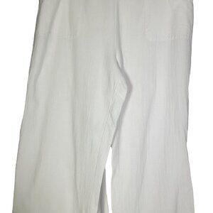 Soft Surroundings Women's White Textured Pull on High Rise Wide Leg Pants Size L. Two front pockets, high rise. Super light weight and 100% cotton.