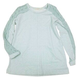 This Soft Surroundings tunic offers a blend of comfort and style, featuring delicate cable-knit sleeves and a practical front pocket. Ideal for layering or standalone wear, this piece complements various casual ensembles. The soft fabric ensures a cozy fit, making it a staple for a versatile wardrobe.