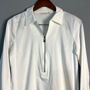 Soft Surroundings Womens XS Tunic Top White Relaxed 1/2 Zip Long Sleeve Career