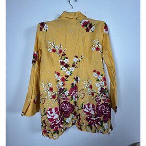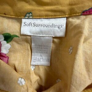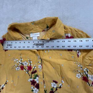 Soft Surroundings Womens Yellow Floral Button-Down Tunic Shirt Top Large Cotton