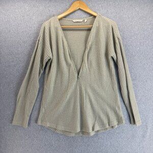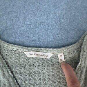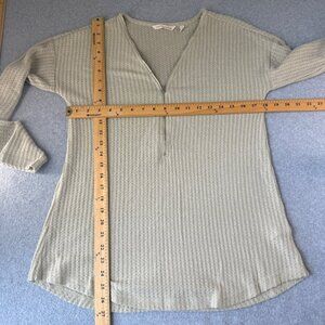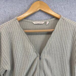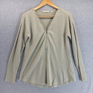 Soft Surroundings Womens Zen Zip Waffle Textured Sweater V-Neck Top Size XS