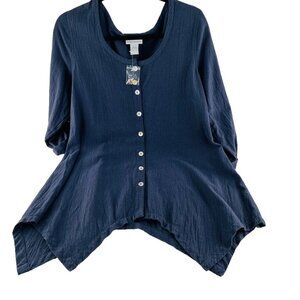 Soft Surroundings Women's size Small Navy Blue Lagenlook 3/4 Sleeves NWT